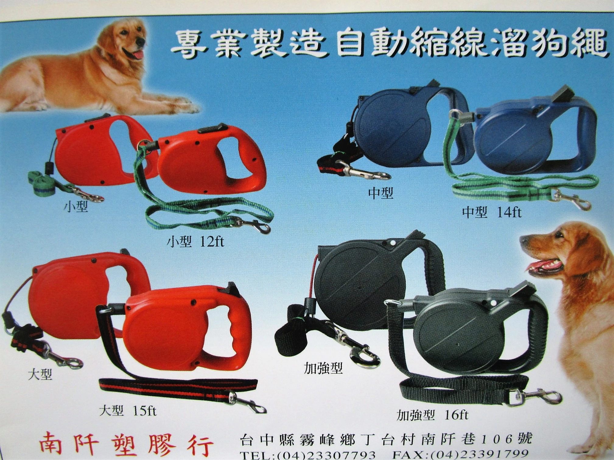 我司專門製作生產自動伸縮牽繩,自有塑膠射出成型機生產牽繩塑膠零件,並加工組合包裝到出貨,早期代工塑膠扣具及寵物用品塑膠零件,現為客製化專業生產伸縮牽繩。